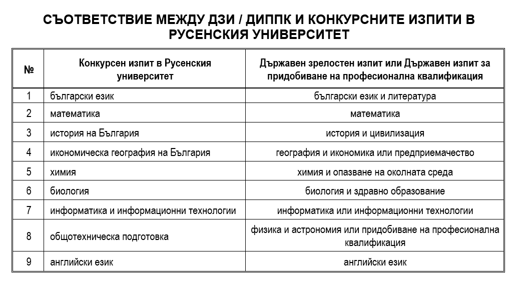 1. Като оценка от конкурсен изпит по съответната дисциплина може да се признае оценката от държавен зрелостен изпит, положен след 01.01.2008 г. и държавният изпит за придобиване на професионална квалификация по чл. 132, ал. 3 от Закона за предучилищното и училищното образование положен при условията и реда на Закона за професионалното образование и обучение след 01.01.2022 г.